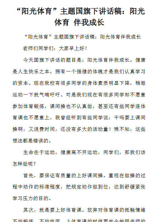 | 阳光体育国旗下讲话最新整理版【高清可编辑打包】 | |