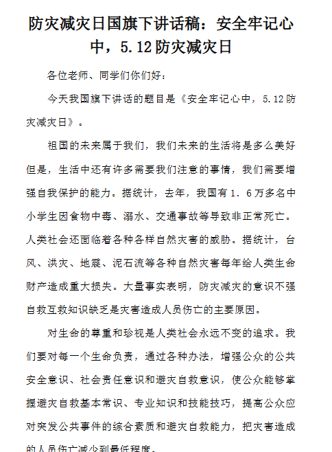 | 15份防灾减灾国旗下讲话最新整理版【高清可编辑打包】 | |