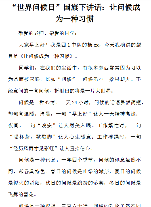 | 【高清可编辑打包】3套问候日国旗下讲话模板一键快速下载,班主任备课神器立即使用!立即保存,编辑打印全搞定! | |