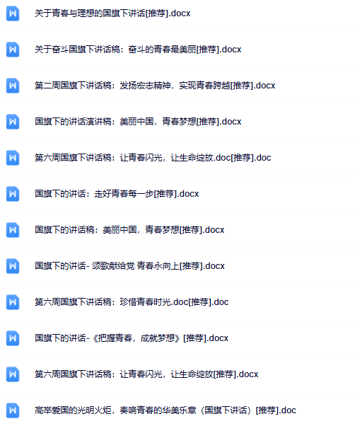 | 25份青春国旗下讲话最新整理版【高清可编辑打包】 | |