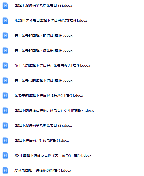 | 40份读书日国旗下讲话最新整理版【高清可编辑打包】 | |