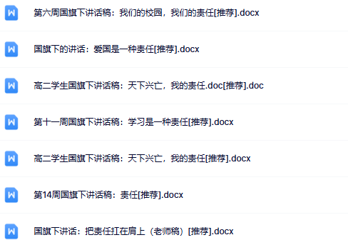 | 【高清可编辑打包】15份责任国旗下讲话立即一键下载,权威内容一键保存,演讲备课高效无忧! | |