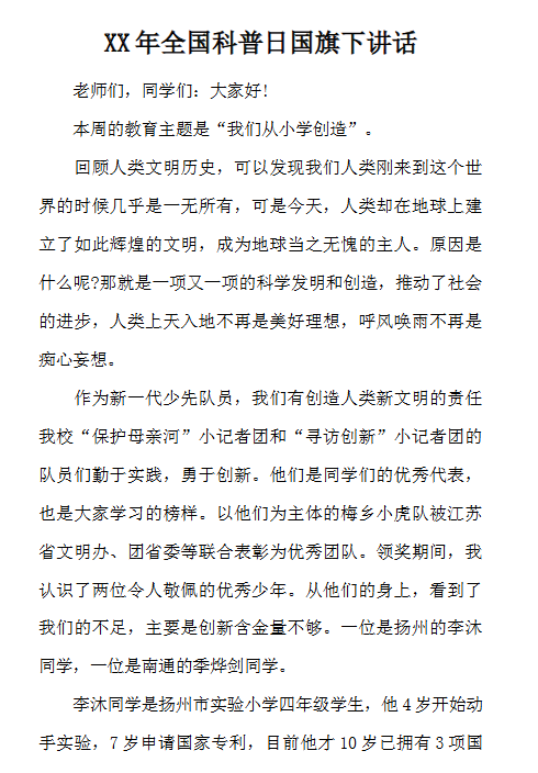 | 一键快速保存,科普日国旗下讲话最新整理版【高清可编辑打包】 | |