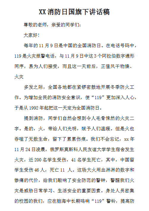 | 一键快速保存高清可编辑!4份消防国旗下讲话最新整理版打包下载,权威内容随时可用,安全教育必备神器!限时领取,错过再无! | |