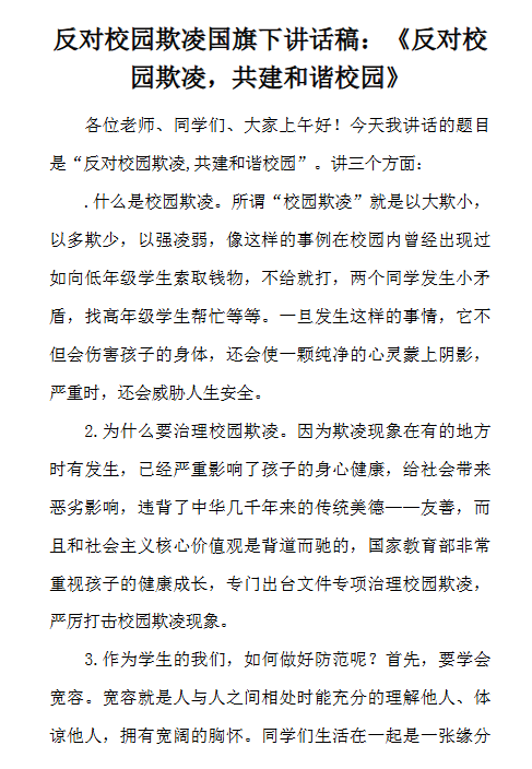 | 校园欺凌国旗下讲话最新整理版【高清可编辑打包】 | |
