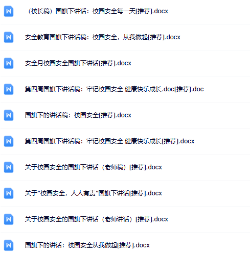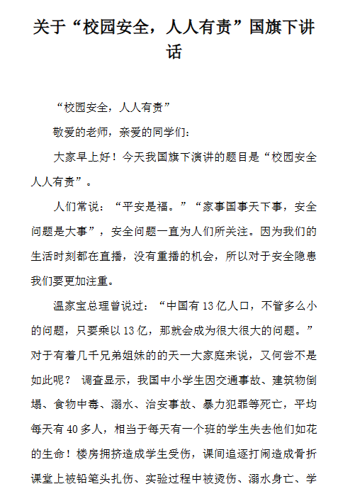 | 10份校园安全国旗下讲话最新整理版【高清可编辑打包】 | |