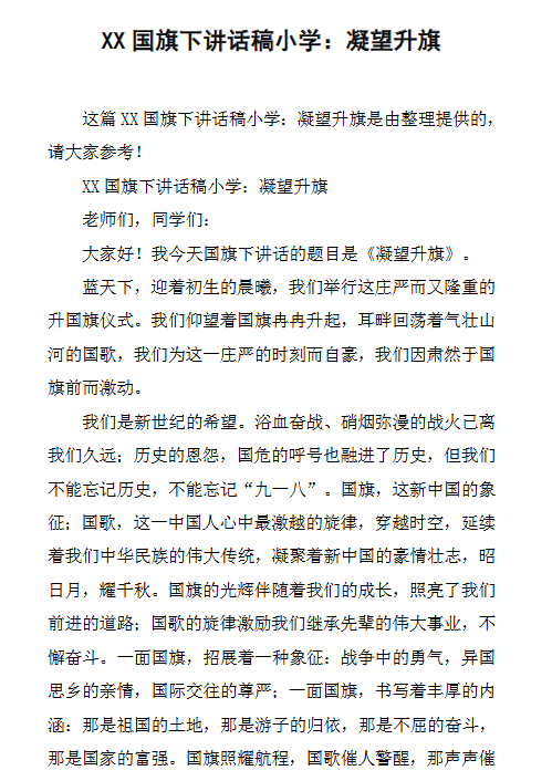 | 使用场景 | 小学升旗仪式主持演讲稿 晨会/德育主题讲话素材 教师每周备课参考资料 学生演讲比赛示范文本 家长参与活动发言模板 |