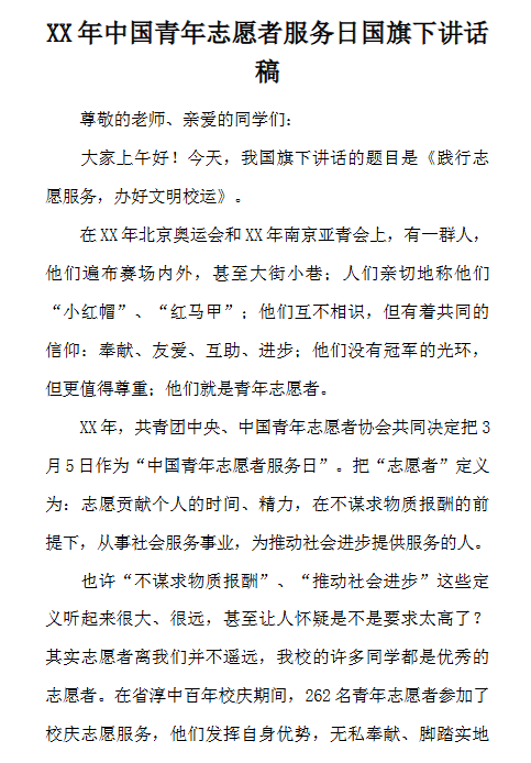 | 【立即一键下载】13套完整版志愿者国旗下讲话模板,高清可编辑,助你快速完成校园演讲任务! | |
