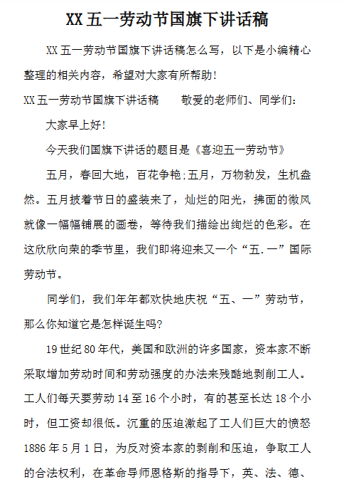 | 【点击立即下载】15套劳动节国旗下讲话高清可编辑完整版!一键保存,校园演讲高效必备! | |