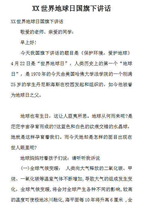 | 10份地球日国旗下讲话最新整理版【高清可编辑打包】 | |