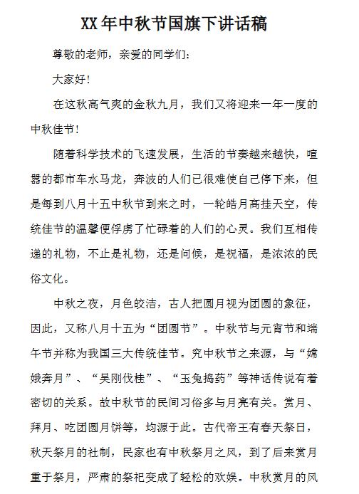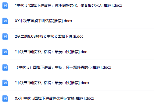 | 15份中秋节国旗下讲话最新整理版【高清可编辑打包】 | |