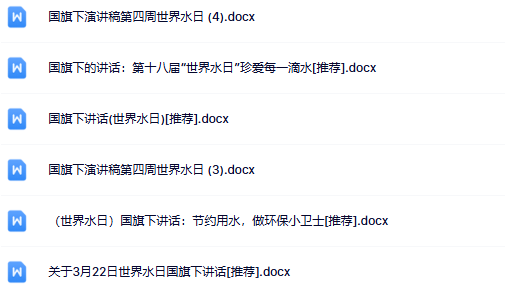 | 19份世界水日国旗下讲话最新整理版【高清可编辑打包】 | |