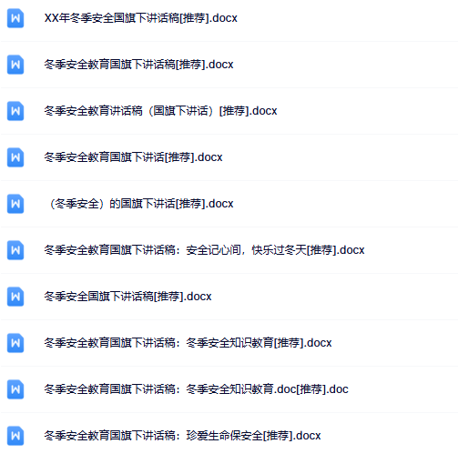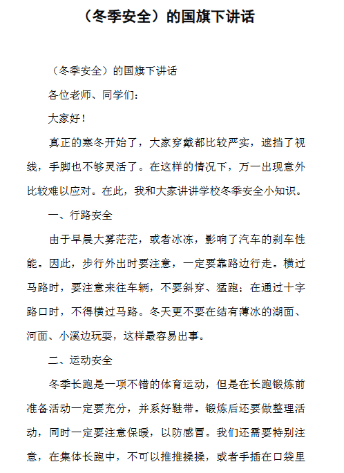 | 10份冬季安全国旗下讲话最新整理版【高清可编辑打包】 | |