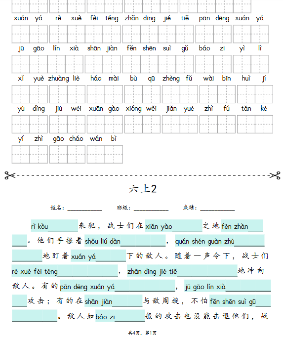 | 适用对象 | 六年级学生|语文教师|家长辅导 适合用于:课后巩固、单元测试、期末复习、预习自学 |