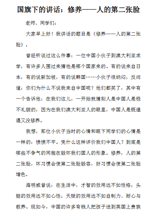 | 2份修养国旗下讲话最新整理版【高清可编辑打包】(精校版) | |
