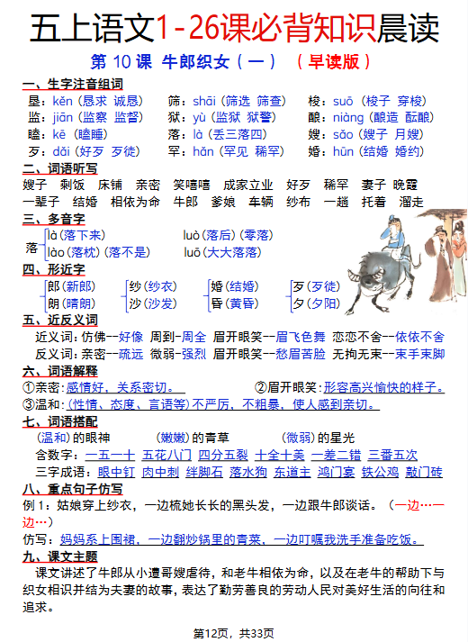 | 一键快速保存,2025秋五年级上册语文1-26必背知识晨读(完整33页PDF)!每天晨读10分钟,全年级领先就这么简单!点击立即下载,让孩子背诵无忧、成绩飙升,错过再无! | |