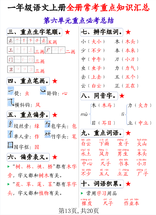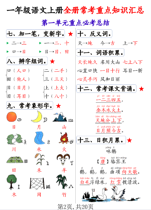 ✨一键极速下载!2025秋一年级语文上册全册20页常考重点知识汇总📚——图解核心考点+记忆口诀,助萌娃轻松拿高分!限时免费速存,别让娃输在起跑线!