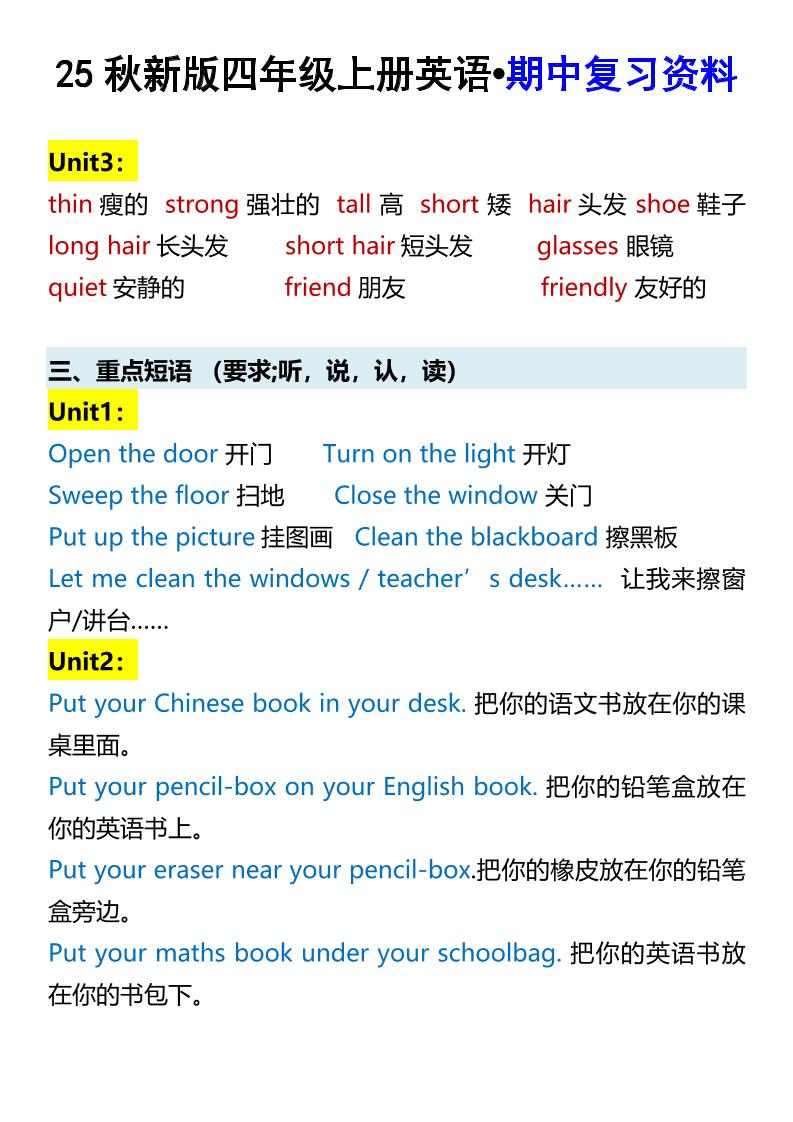 【2025秋新版】四年级上册英语•期中复习资料(一键下载) | |