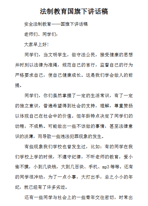 | 使用场景 | ✍️ 周一升旗仪式现场宣读 📚 法治主题班会/德育课程参考资料 📝 校领导讲话材料模板修改使用 🏫 全国法制宣传日(12.4)活动必备素材 |