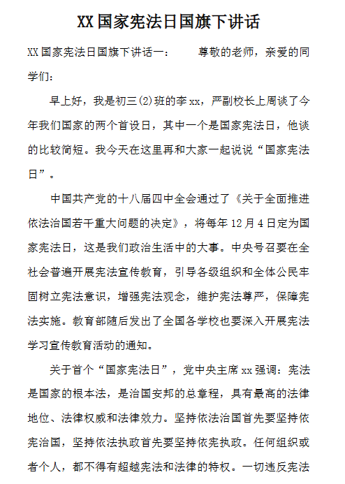 | 使用场景 | ▶ 周一升旗仪式演讲稿 ▶ 宪法日主题教育活动资料包 ▶ 政治/道德与法治课程教学示范素材 ▶ 校团委宣传栏内容直接排版使用 ▶ 新教师入职培训教案参考范本 |