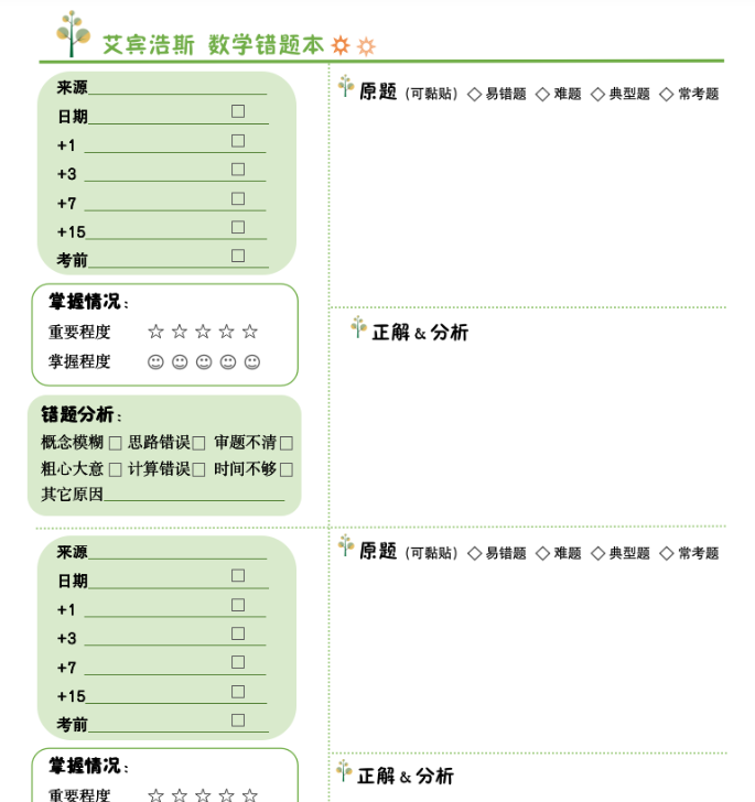 | 【立即一键下载】新版艾宾浩斯小学生错题本高清无水印,复习效率翻倍,考试不再丢分! | |