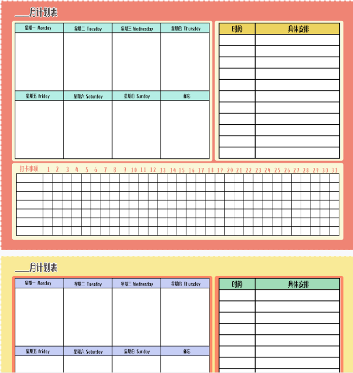 无水印版 - 【新版】月计划表【高清无水印】