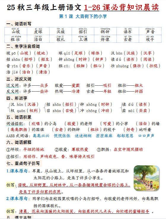 | 资源亮点 | ✅新版教材同步更新,严格对照部编版单元结构 ✅50份精品资源全打包,覆盖生字、阅读、作文、背诵全科 ✅高清无水印高清画质,投影打印皆完美呈现 ✅按单元分类整理,扫码一键下载,秒存秒用! |