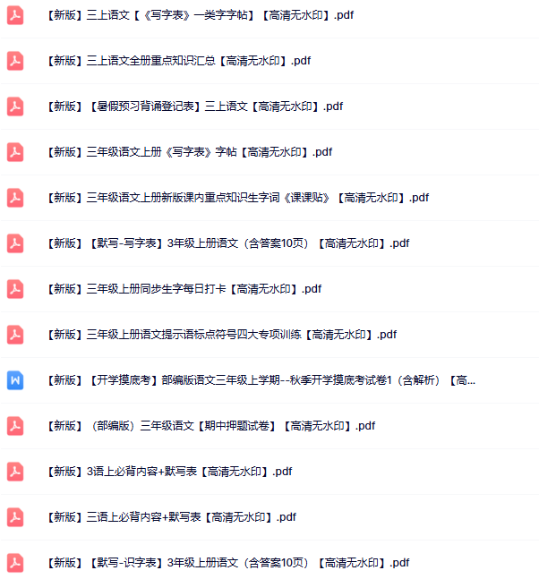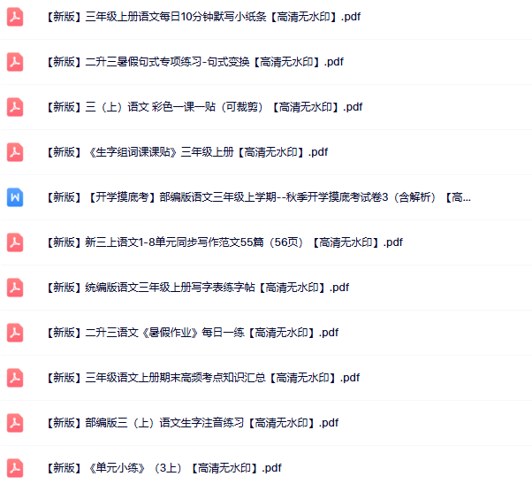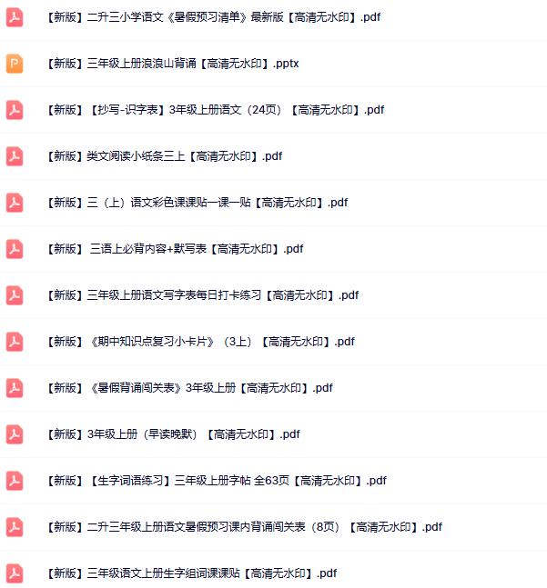 | 【高清无水印】50份新版三年级语文上册资源极速下载!立即一键保存,为孩子打造高效学习起点!限量整理,错过即落后! | |
