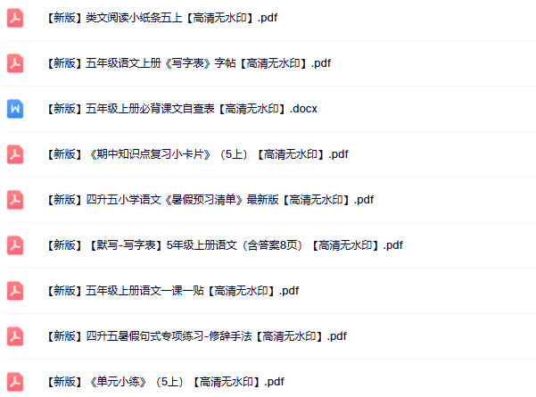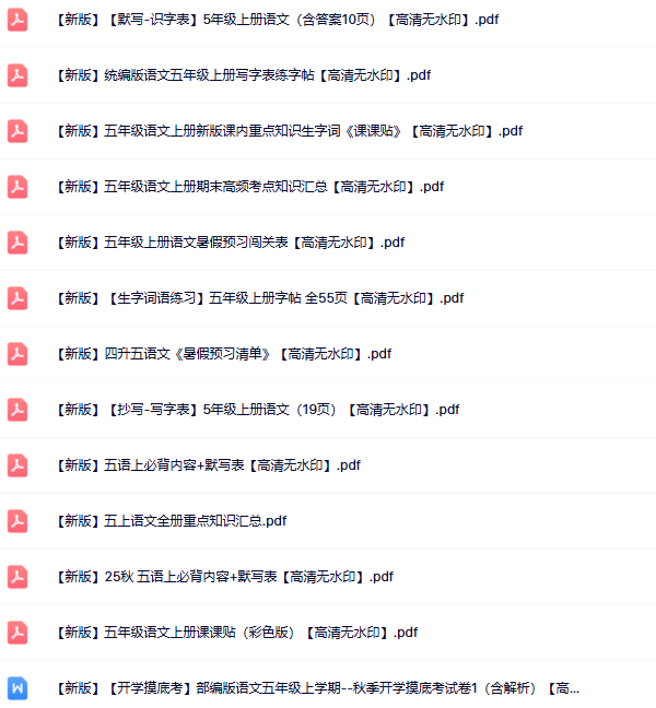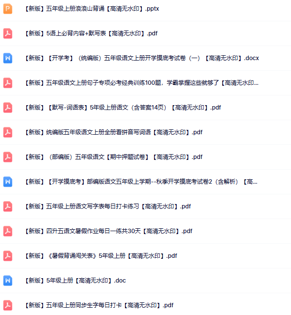 | 🔥一键快速保存,全新48套五年级语文上册精品资源包!高清无水印+系统分类整理,秒速获取,备考效率直飙升!错过再等一年! | |