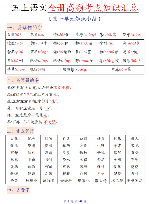 | 适用人群 | 五年级学生:系统复习,轻松冲刺高分 语文教师:配套教学,拿来即用 家长辅导:无需筛选,一键打印即教具 培训机构:课程素材直接打包使用 |