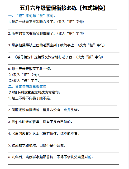 | 🔥【新版】六年级上册语文句式训练13份高清无水印版,一键保存秒拿满分!系统归纳必考句式类型,AI智能优化答题模板,备考效率直升300%,限时免费极速下载,手慢无! | |