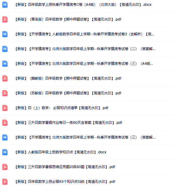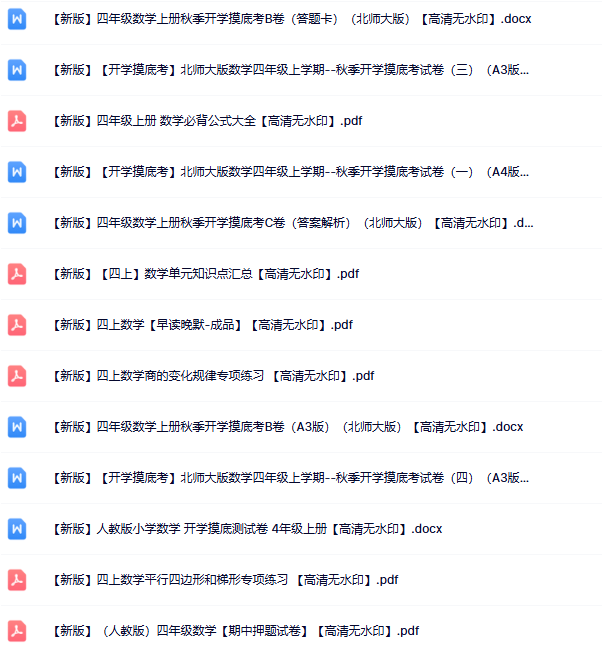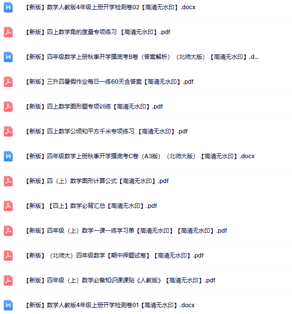 | 🚀限时免费领取!52份四年级数学上册高清无水印资源包,点击即存,立即提升教学/学习效率!错过再无! | |
