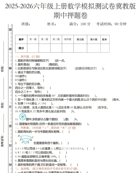 | 一键极速保存,最新冀教版1-6年级期中卷打包整理高清版!完整单元检测题库全覆盖,家长/教师必备资源包,错过再无!点击立即下载,抢先获取高清试题资料! | |