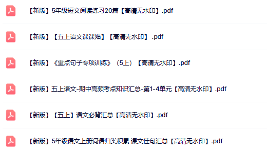 | 【高清无水印】五年级语文上册全套资料一键打包下载,领先一步,轻松夺冠! | |