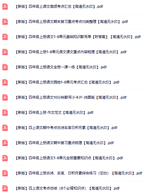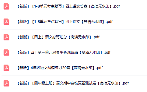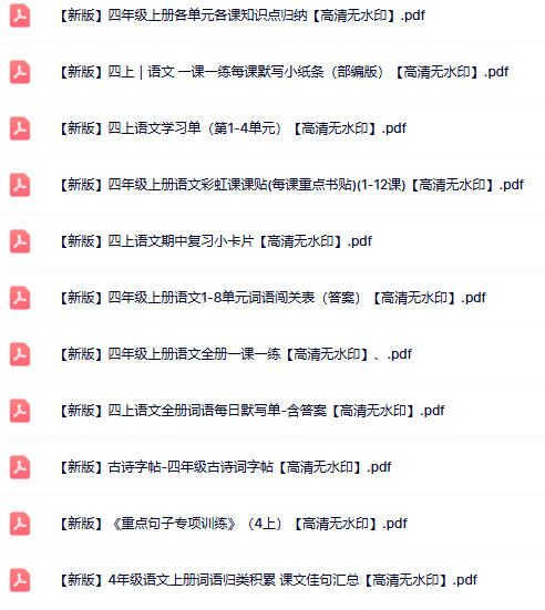 | 一键保存高清无水印!51份四年级语文上册热门资料打包下载,覆盖单元考点+名师笔记+专项练习,期末冲刺速提分,错过再无!点击立即下载,让孩子领先一步! | |