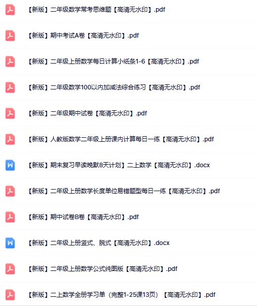 | 41份二年级数学上册热门资料打包下载【高清无水印】——小学数学提分神器,速存速用 | |