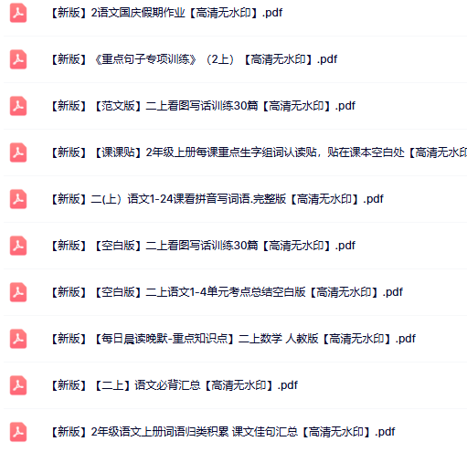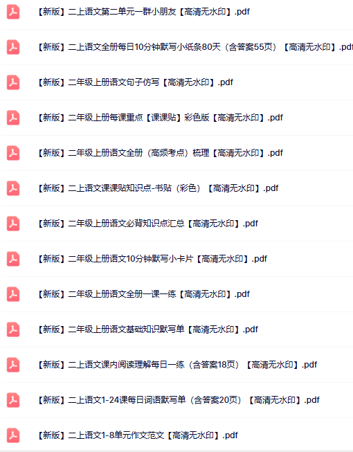 无水印版 - 64份二年级语文上册热门资料打包下载【高清无水印】