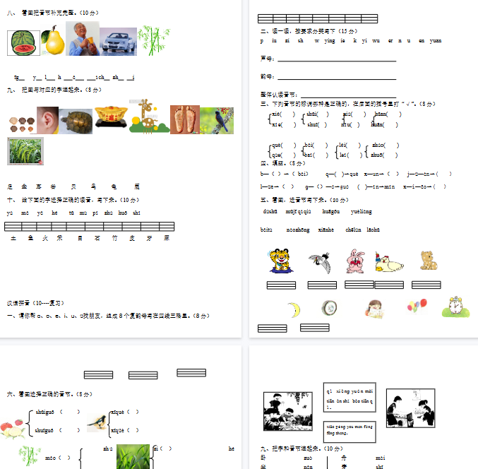 | 高清打印 instantly ready! 6页完整汉语拼音练习题一键下载,精准训练发音与拼写,幼小衔接、小学生拼音速成必备,下载即用,效率翻倍!立即获取让孩子轻松掌握拼音的利器! | |