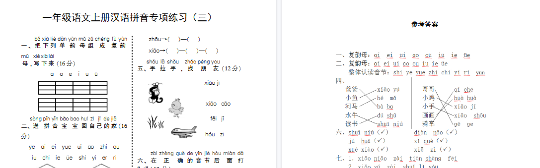 | 【限时免费获取】高清可打印拼音练习卷(三)带答案!点击一键下载,2页立即收藏,助孩子拼音满分起步! | |