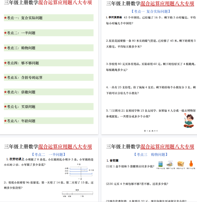 | ✅一键快速保存,三上数学期末混合运算应用题高清版!9页完整汇总可直接打印,精准覆盖考点难点,突击复习高效提分,备考神器速领! | |