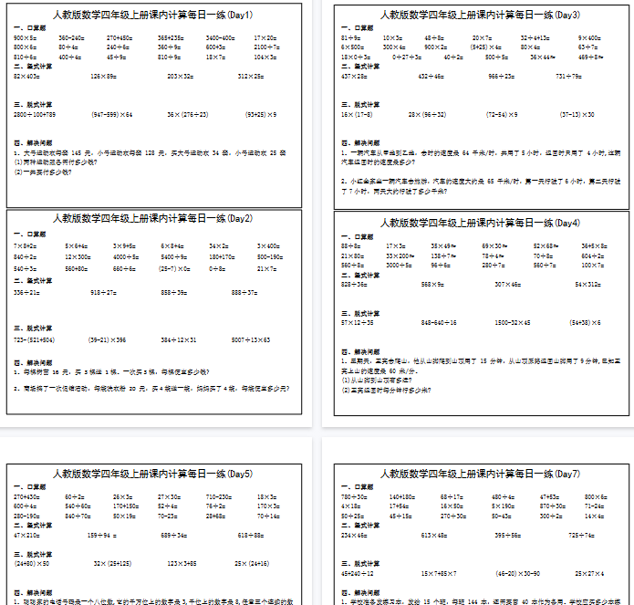 | 🚩【拿走即用】人教版四年级上册数学计算提分神器 → 一键下载完整46页高清版,打印即练!稳拿计算分,期末冲高分! | |