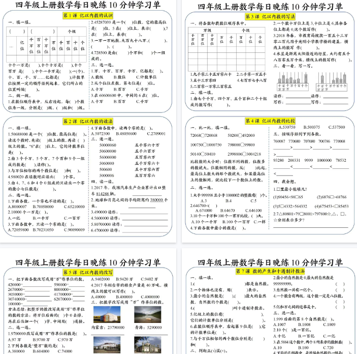 | 【4页完整版】四年级(上)数学每日晚练10分钟学习单【期末高清版可直接打印】 | |