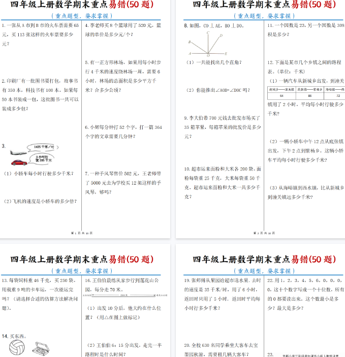 | 🔥【16页完整版】四年级上册数学期末重点易错50题✅ 直接高清打印版!一键快速保存,孩子期末冲刺提分必备神器!错过再无,限时下载掌握拿分技巧! | |