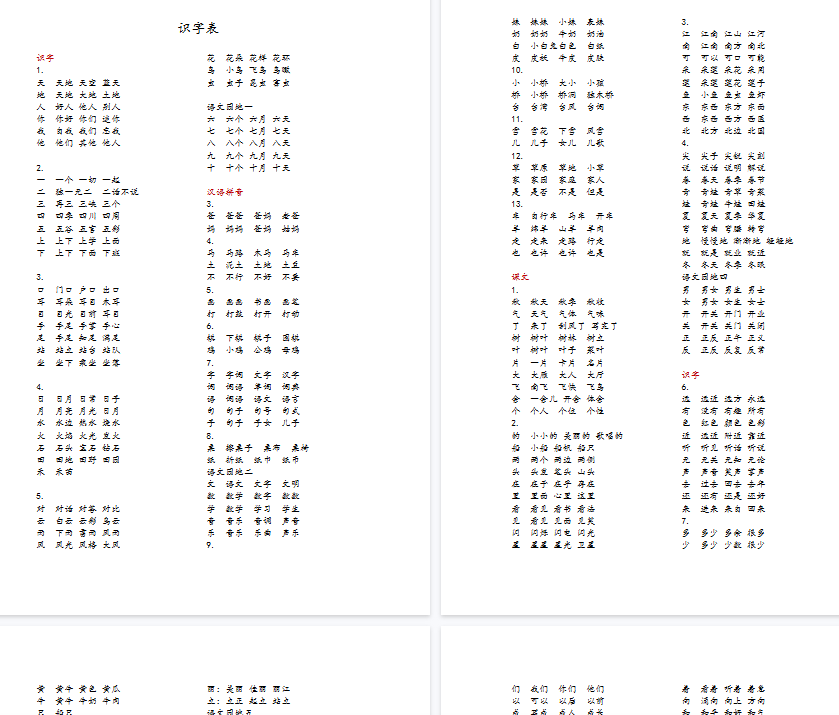 | 【6页完整版】词语表【高清直接可打印】 | |