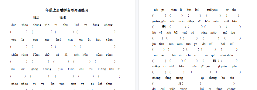 | 高清可一键打印!2页完整版看拼音写词语练习卷,同步小学语文基础,快速下载即刻拿高分,书写规范零失误,家长教师速存必备! | |