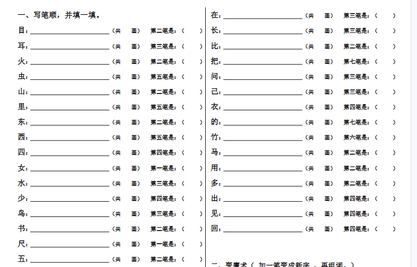 | 【2页完整版】笔顺、加减一笔、加偏旁专项练习题【高清直接可打印】 | |