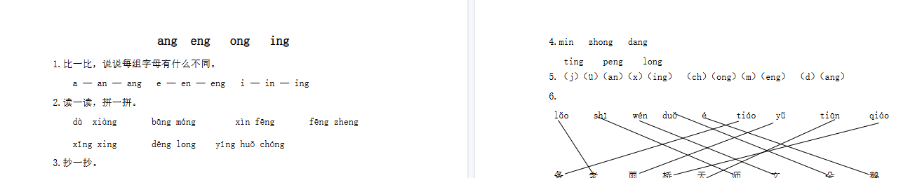 | 高清可一键打印!2页完整版拼音学习电子作业(ang eng ing ong),让孩子零基础速掌握发音规律,趣味练习+标准书写模板,家长老师速速收藏下载,立即获取打印版! | |