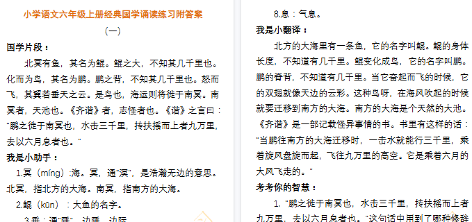 | 🚀立即一键下载!高清完整版《小学语文六年级上册国学诵读练习》附答案详解,直接打印让孩子每天进步一点点,领先一步赢在起跑线! | |
