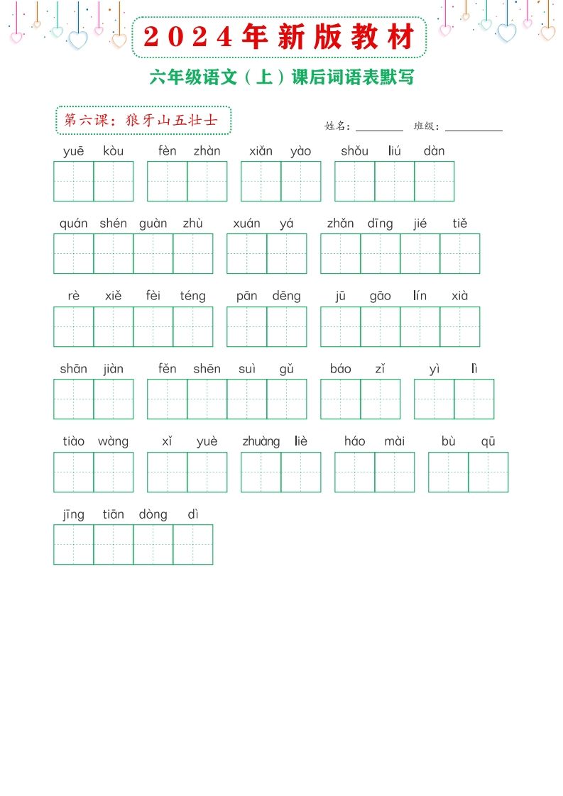 ✨【24新版】六上语文课后词语默写表,一键快速保存!新版同步教材核心词汇,全彩高清可打印默写本!立即点击一键保存,高效完成每日积累,告别作业拖延! | |