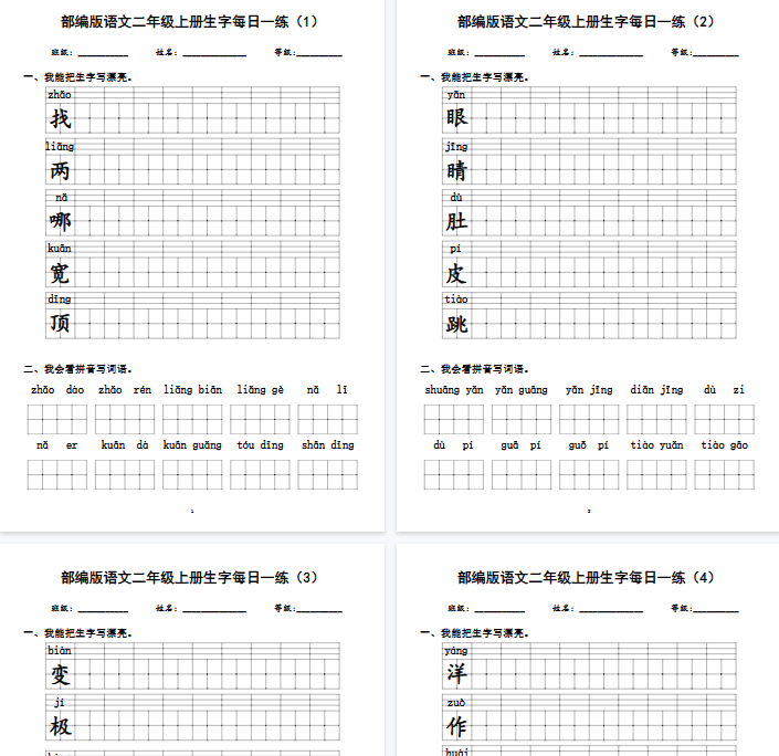 | 【56页完整版】二(上)语文生字每日一练 – 每日1页,打卡全学年规范书写与扎实记忆 | |
